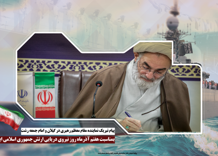 نماینده مقام معظم رهبری در گیلان و امام جمعه رشت به مناسبت فرارسیدن هفتم آذرماه، روز نیروی دریایی ارتش جمهوری اسلامی ایران، پیامی صادر...